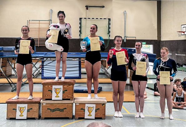 Die Wettkämpfe, eingeteilt in 4 Anfängerklassen, 2 fortgeschrittene und 2 Masterklassen, liefen für unsere Turnerinnen im Großen und Ganzen recht gut. Es gab wenig Abbrüche und am Ende standen am Ende für den Ausrichter sechs Podestplätze. Kamila, die noch vor vier Wochen für das Team des VfL Hameln am Bezirksmeistertitel mitarbeitete, erreichte hier für die TSG Emmerthal den 1. Platz bei den Fortgeschrittenen 14 Jahre und älter.
