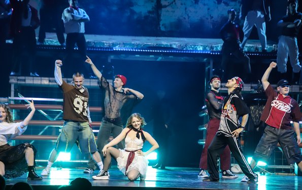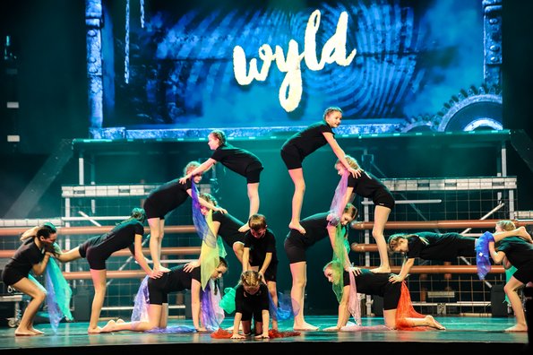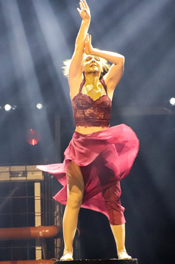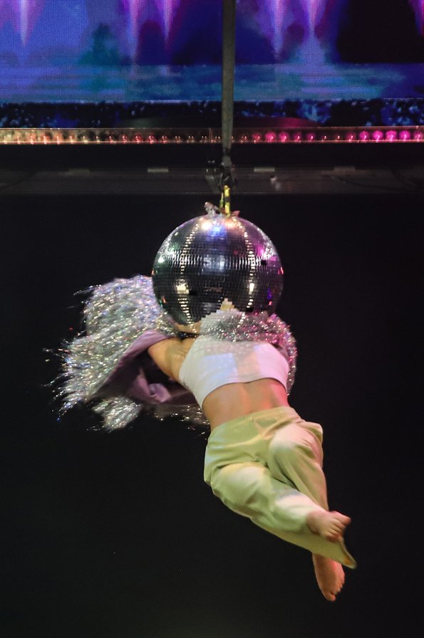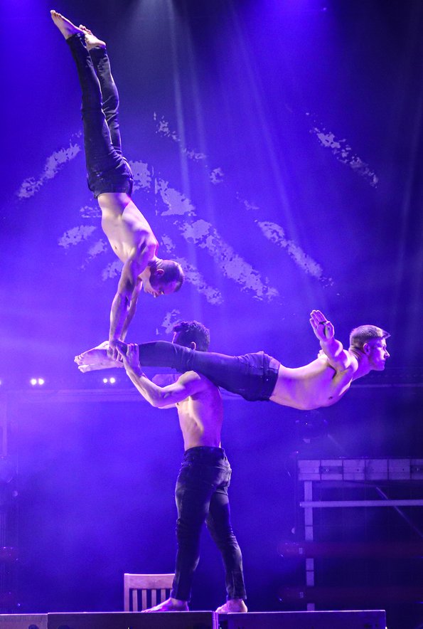 In der Rattenfängerhalle sprang der Celebration-Funken sofort über. Großen Anteil daran hatte Rosemie. Die schrullig daherkommende Schwäbin mit dem omihaften Dutt sorgte mit ihrer clownesken Confèrence von der ersten Sekunde an nicht nur für beste Stimmung, sondern auch mit ihren Alophorn- und Spitzentanzeinlagen für eine überaus amüsante Verbindung zwischen den einzelnen Showacts. Und von denen hatte es ein jeder in sich. So baute die Ukrainierin Viktoria Gnatiuk mit kunterbunten Bauklötzen einen wackligen Turm, auf dem sie sich auf Händen stehend in die Luft schraubte, so versetzten die über zwanzigfachen Deutschen Meister in der Sportgymnastik vom SCK Tabea Halle die Zuschauer ins Staunen, so glänzten Jose und Gaby aus Kolumbien mit ihrer Zirkusakrobatik aus zeitgenössischem Tanz und rhythmischer Sportgymnastik, und so sorgten die Schweden Lukas und Aaron mit ihren atemberaubenden Sprüngen vom Teeterboard und ihren Pirouetten auf dem Cyr Wheel für Beifallsstürme. Nicht minder gefeiert wurden die fliegenden Artisten von „Lift“ aus Frankreich ganz besonders für ihre rasante Rock`n Roll-Show und ebenso das Showprojekt mit den ehemaligen Bundesligaturnern Artem Ghazaryan und Thomas Greifenstein.