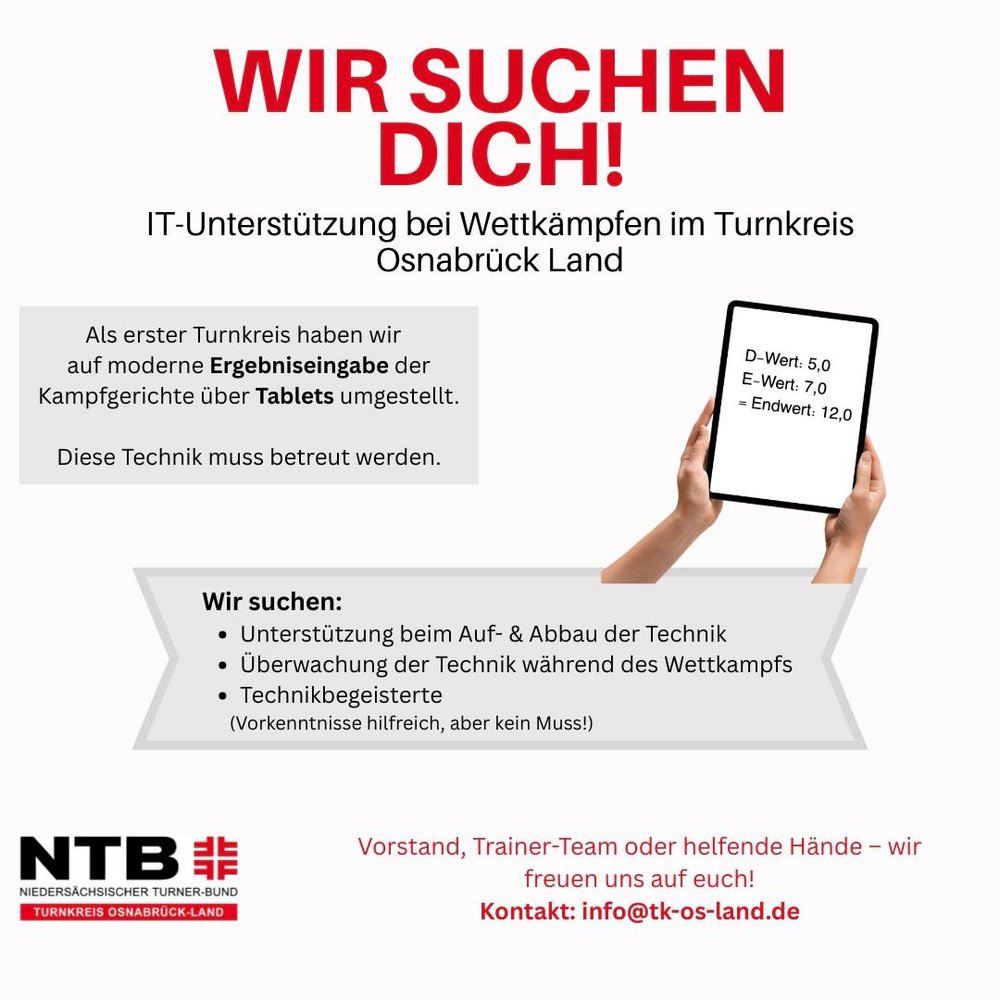 Wer hat Zeit und Lust den Turnkreis Osnabrück-Land bei der EDV Erfassung der Wettkämpfe zu unterstützen?