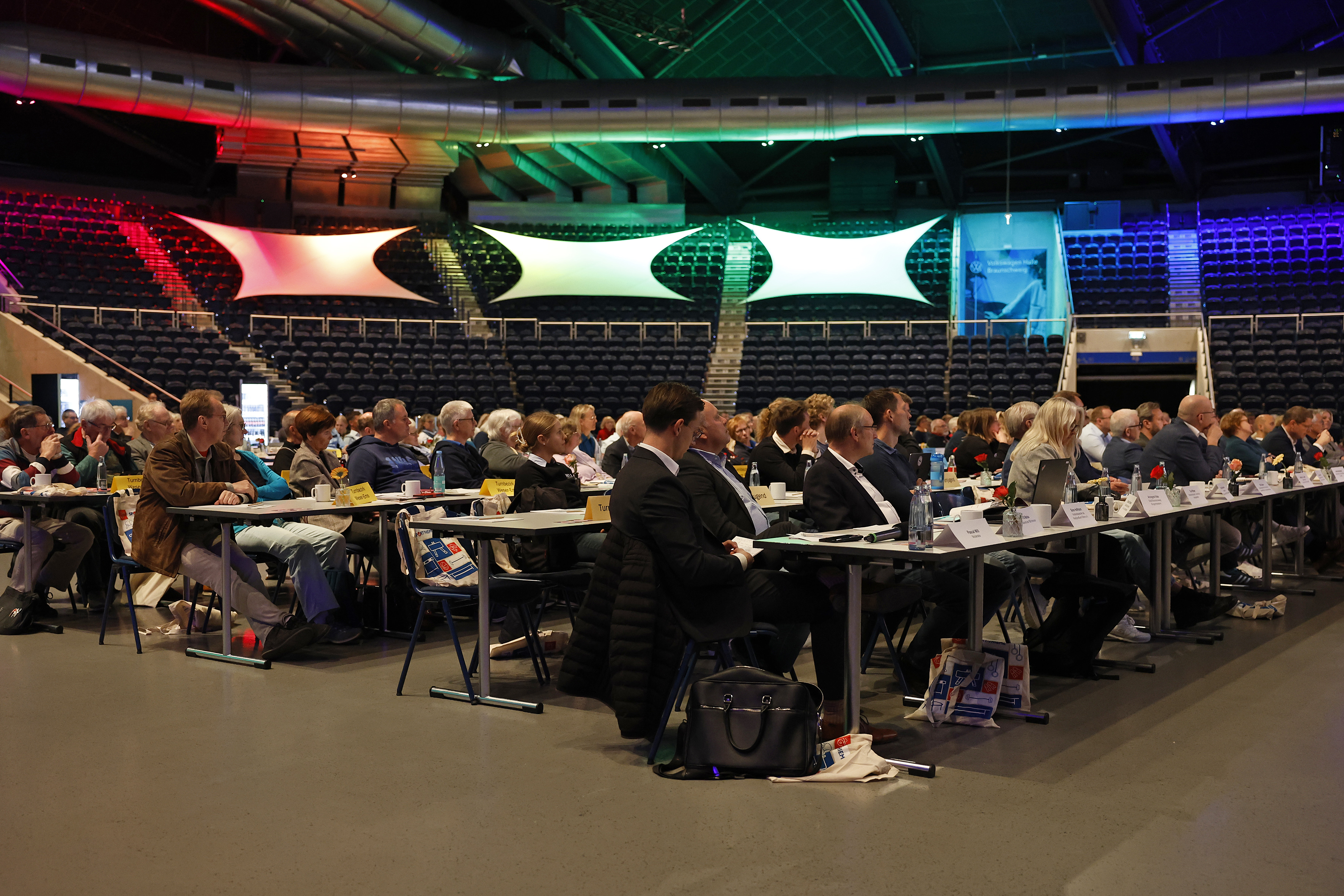 Eine ganz besondere Ehrung wurde Heiner Bartling zuteil. Im würdigen Rahmen des Landesturntages und unter dem tosenden Applaus der Abgeordneten wurde ihm das Verdienstkreuz 1. Klasse des niedersächsischen Verdienstordens verliehen. In seiner Rede bedankte er sich und stellte hinsichtlich unseres Leitthemas fest: „Lebensfreude, Aufbruch und Zusammenhalt sind unglaublich wichtige und entscheidende Aspekte in unserer Gesellschaft. Ich glaube, dass in einem Umfeld, das sehr stark von Krisen, von tatsächlichen oder gefühlten Bedrohungen, von emotionalisierten Schlagzeilen und manipulativen sozialen Medien-Kampagnen und der Lust am Destruktiven geprägt ist, Lichtblicke und ein realistischer Blick auf das Gute von elementarer Bedeutung sind. Unsere Turn- und Sportvereine sind genau die richtigen Orte für Lebensfreude, Aufbruch und Zusammenhalt. Wir sind ein Stück Demokratie im Turnschuh.“