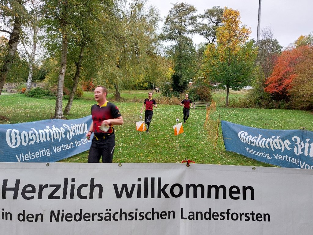 Nur einen Tag später war dann Team-Spirit gefragt. Zwischen Wolfshagen und dem Innerstetal wartete gleich die nächste völlig neue Karte in einer Ecke des Harzes, wo bisher auch noch nie OL-Wettkämpfe stattgefunden hatten. Die Landesmannschaftsmeisterschaften erforderten kluges Aufteilen der Wahlposten zwischen den Mannschaftsmitgliedern, so dass ohne großes Warten am letzten Posten möglichst gleichzeitig ins Ziel gelaufen werden konnte. Christoph Hofmeister und Nilas Stamer hatten dazu Tom Buchholz ins Team MTK Bad Harzburg 1 geholt und meisterten diese Aufgabe in der Herrenhauptklasse mit knapp 10 Minuten Zeitvorsprung am besten vor Till Finkenstädt, Jan Schliebener und Fabian Ulbrich vom OLV Uslar und dem Trio Jonas Dresel, Partick Dresel und Lennart Weckeck aus Klecken. In der Damenhauptklasse kam es sogar zu einem Doppelsieg des MTK Bad Harzburg mit Pia Buchholz und Carlotta Haupt vor den Schwestern Rieke Bruns und Svenja Raschdorf-Bruns, nachdem sich die Favoritinnen Birte Friedrichs und Lena-Maria Klose vom MTV Seesen einen Fehlstempel geleistet hatten und somit aus der Wertung fielen.