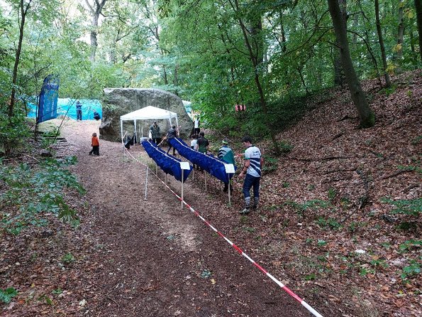 Für die diesjährige LM Staffel hat der ausrichtende TK Hannover ein ganz besonderes Gelände zurückgegriffen. Im Stadtwald der Eilenriede vor den Toren des Hannoveraner Zoos fiel am Sonntag 8. September ab 10h der Startschuss für den Massenstart der Staffeln. In diesem Laufgebiet fand bereits 1937 (!) eine der ersten Orientierungslaufveranstaltungen überhaupt in Deutschland statt. Ein dichtes Wege- und Pfadenetz durch Wald mit Laufbehinderung im Unterbewuchs forderte hohes Lauftempo und schnelle Entscheidungen für die schnellste Route. Nach dem Absprung vom Weg brauchte es zusätzlich genaue Navigation und Peilung, um die Posten im unübersichtlichen Gelände sauber anzuorientieren. Zugeschüttete Bombenkrater, von denen noch flache Senken übrig geblieben waren, bildeten vielfach den Postenstandort.