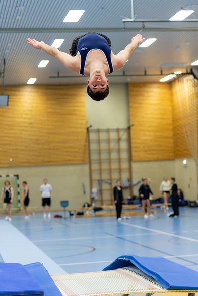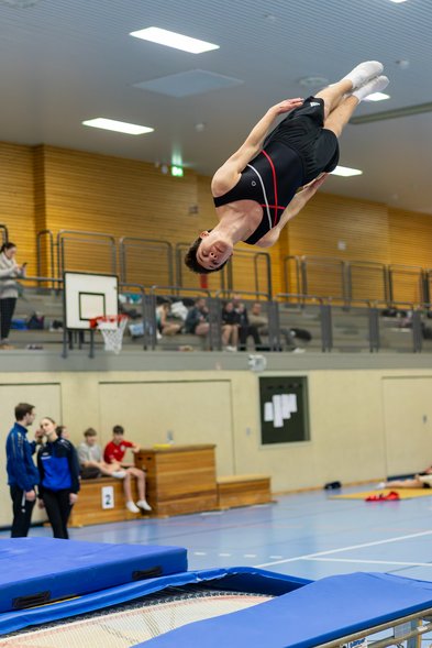 Mit den Doppelmini-Meisterschaften beginnt auf Landesebene die Wettkampfsaison. Eine Rekordbeteiligung konnte Monika Jirjahlke als Beauftragte für das Wettkampfwesen melden. Die Teilnehmerzahlen waren nicht nur höher als die letzten Jahre, sondern konnten die Zahlen von vor Corona sogar übertreffen. 100 Aktive verzeichnete die Siegerliste. Eine Herausforderung für die Organisation und die Aktiven, denn der Wettkampf beanspruchte den ganzen Tag. "Seit 01.01.2025 gilt der neue „Code of Points“ der die Wettkampfregularien weltumspannend regelt und über den DTB bis in die Kreisebene Anwendung findet", so Monika Jirjahlke. "Mit dem neuen Olympia-Zyklus wurden zahlreiche Änderungen in Wettkampfabläufen, Schwierigkeits- und Haltungsbewertung und besonders für das große Trampolin eine Neustrukturierung der vorgeschriebenen Pflichtübungen vorgenommen." Neben diesen Änderungen gab es noch eine Besonderheit: Mit Yannis Schwertfeger kam der jüngste Kampfrichter in Niedersachsen zum Einsatz. Von den erfahrenen Kampfrichtern und Trainern konnte sich niemand daran erinnern, dass jemals ein 15-Jähriger in einem Kampfgericht gesessen hatte. Der Aktive aus Neu Wulmsdorf merkte vor einiger Zeit, dass er nicht mehr so recht weiterkam. Der Vorschlag seines Trainers, es doch einmal in der Kampfrichterei zu probieren, gefiel ihm. So machte er die entsprechenden Ausbildungen, bestand die Prüfungen und hinterließ bei seinem ersten Einsatz auf Landesebene einen guten Eindruck. Ein positives Fazit zog die Beauftragte für Wettkampfwesen Trampolinturnen nach dem Wettkampf: „Diese herausfordernden Änderungen, konnten wir heute bei den LM DMT gut integrieren und umsetzen“.