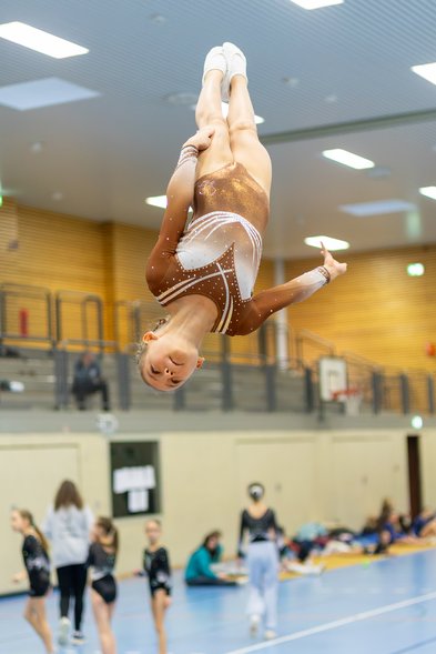 Line Gäbler steigerte sich im Finale. 29,050 Punkten standen für die Turnerin aus Osterholz-Scharmbeck in der Siegerliste. Somit war sie die beste von 25 Aktiven. Lina Hübner (Reislingen) folgte auf Rang zwei. Knapp dahinter platzierte sich Valeria Kaufmann (Osterholz-Scharmbeck).