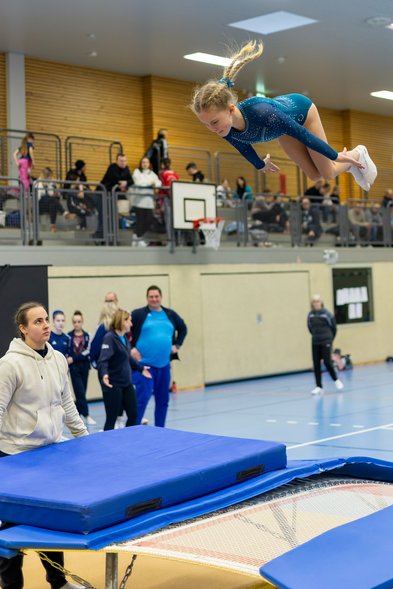 101 Aktive hatten zum ersten Wettkampf in diesem Jahr gemeldet. In Laatzen beim VfL Grasdorf fanden die Landesmeisterschaften auf dem Doppelminitramp statt. Sabine Wiese hatte mit ihrem Team in gewohnter Weise für eine angenehme Atmosphäre gesorgt. Ein Minitramp mit ausreichend Mattenabsicherung und eine Verpflegungsstation standen für die Turnerinnen und Turner zur Verfügung. Dieses Mal gab es kein gesondertes Einturnen für alle, sondern ein Einturnen von mindestens 20 Minuten für jede Gruppe. Wenn es bei der enormen Teilnehmerzahl ein langer Wettkampf war, hatte sich diese Maßnahme jedoch bewährt. Dass es am Ende nicht 101 Aktive waren, ist im Winter bei den Erkältungszahlen normal. Die Gruppenstärke reichte von drei Teilnehmern bis zu 18 Teilnehmerinnen. Außer Konkurrenz starteten drei Turnerinnen aus Billerbeck (NRW). Zehn Vereine erreichten eine Platzierung, die mit einer Gold-, Silber- oder Bronzemedaille belohnt wurde. Erfolgreichster Verein war Ganderkesee mit drei Erstplatzierungen. Blau-weiß Hollage und Neuwulmstorf setzen sich auf Rang eins bei den Mannschaftsmeisterschaften in den zwei Klassen durch.
