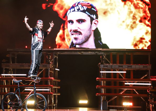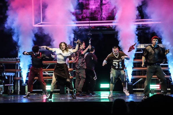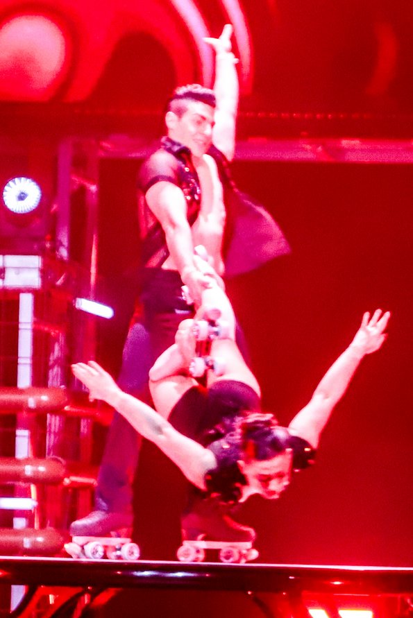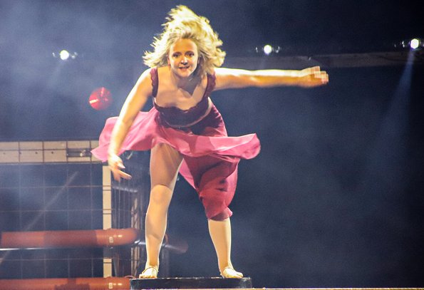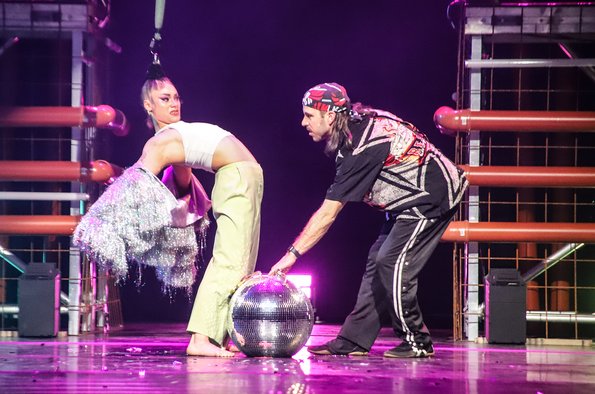 In der Rattenfängerhalle sprang der Celebration-Funken sofort über. Großen Anteil daran hatte Rosemie. Die schrullig daherkommende Schwäbin mit dem omihaften Dutt sorgte mit ihrer clownesken Confèrence von der ersten Sekunde an nicht nur für beste Stimmung, sondern auch mit ihren Alophorn- und Spitzentanzeinlagen für eine überaus amüsante Verbindung zwischen den einzelnen Showacts. Und von denen hatte es ein jeder in sich. So baute die Ukrainierin Viktoria Gnatiuk mit kunterbunten Bauklötzen einen wackligen Turm, auf dem sie sich auf Händen stehend in die Luft schraubte, so versetzten die über zwanzigfachen Deutschen Meister in der Sportgymnastik vom SCK Tabea Halle die Zuschauer ins Staunen, so glänzten Jose und Gaby aus Kolumbien mit ihrer Zirkusakrobatik aus zeitgenössischem Tanz und rhythmischer Sportgymnastik, und so sorgten die Schweden Lukas und Aaron mit ihren atemberaubenden Sprüngen vom Teeterboard und ihren Pirouetten auf dem Cyr Wheel für Beifallsstürme. Nicht minder gefeiert wurden die fliegenden Artisten von „Lift“ aus Frankreich ganz besonders für ihre rasante Rock`n Roll-Show und ebenso das Showprojekt mit den ehemaligen Bundesligaturnern Artem Ghazaryan und Thomas Greifenstein.