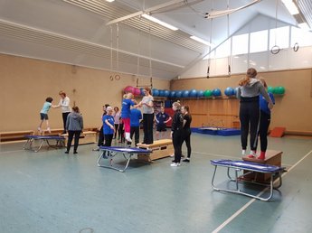 Unter der Leitung von Sabine Schönhardt und Elmar Rux fand am 7. März 2020 ein Lehrgang zum Einsatz des Minitramps beim Turnkreis Nienburg statt. Der Vormittag wurde für zahlreiche Grundlagen und Einführungsübungen zum Springen auf dem Minitramp genutzt. Natürlich durfte auch der Sicherheitsaspekt nicht fehlen. Am Nachmittag standen dann verschiedene Wettkampfsprünge auf dem Programm und die Teilnehmer hatten die Möglichkeit, ein Doppel-Mini auszuprobieren.