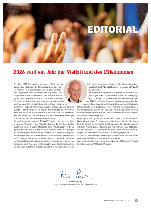 TURNWELT - Das Vereinsmagazin, EINS | 2022: Aktiv auf neuen Wegen