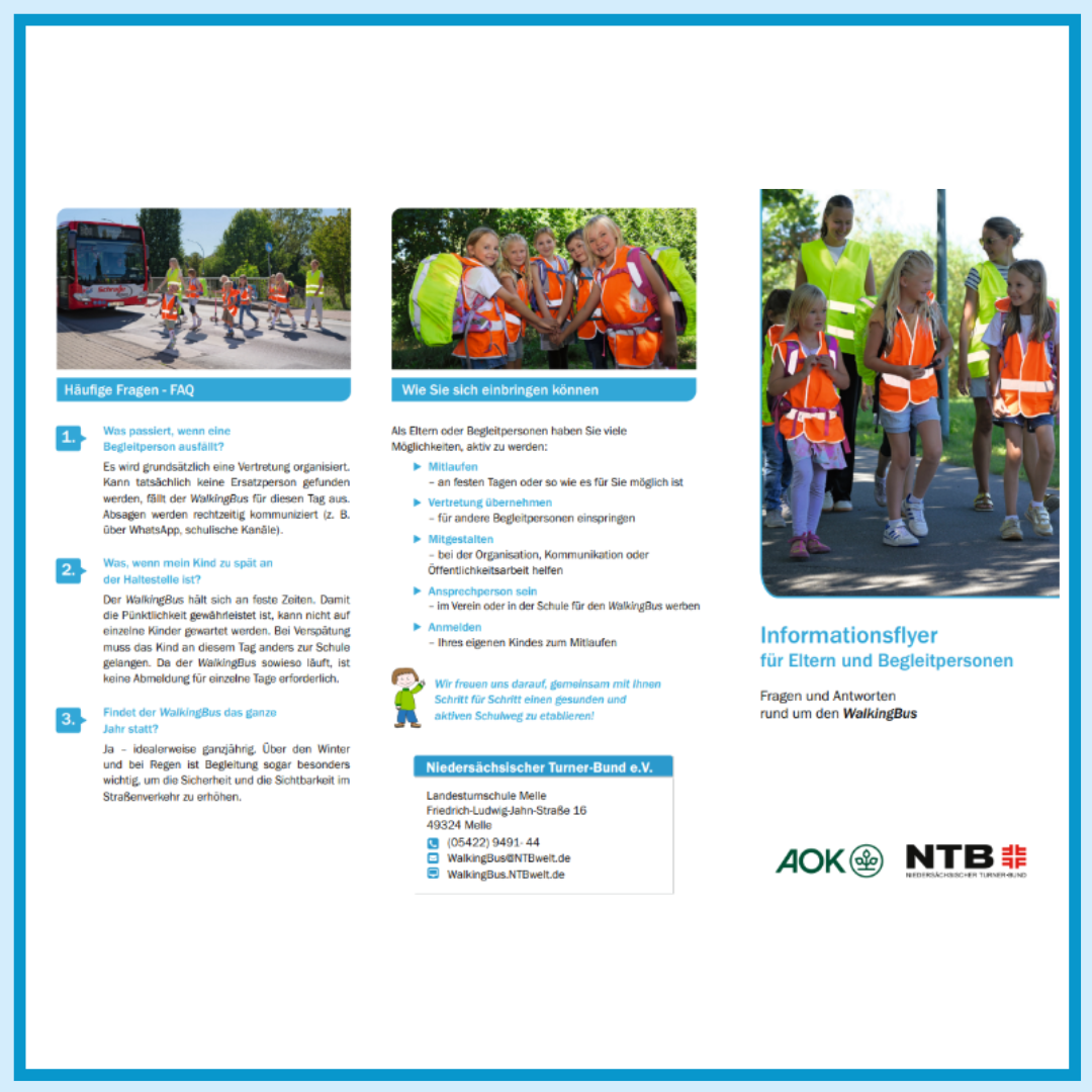 Damit Ihr den WalkingBus optimal bei Euch umsetzen könnt, haben wir Materialien erstellt, die wir gerne an Euch weitergeben möchten. Einige Materialien könnt Ihr direkt herunterladen, individualisieren und ausdrucken. Andere Materialien könnt Ihr bei uns in hochwertiger Qualität bestellen. Schreibt uns dafür bitte eine E-Mail an WalkingBus@NTBwelt.de oder meldet Euch telefonisch.