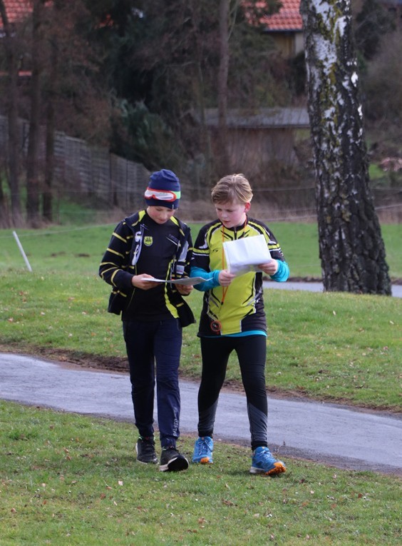 Das ganze Wochenende lernten die Kinder hier in zwei Gruppen unter Anleitung der 12 Betreuer*innen unterschiedliche OL-Techniken und bekamen hilfreiche Tipps von den erfahrenen jungen Erwachsenen, die sie unterstützten. Die Kinder, die schon mehr Praxis im Orientieren hatten, lernten im Wald Techniken wie Relocation und das Lesen von Höhenlinien, während die etwas Unerfahreneren die Grundlagen und das Einnorden der Karte im Dorf übten. Der Lehrgang wurde mit einem kleinen Wettkampf am Sonntag beendet, bei dem die Kinder das Erlernte auf einer Strecke im Wald anwenden konnten.