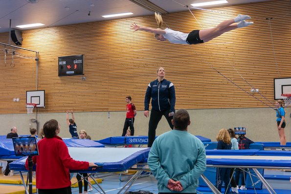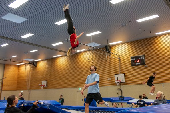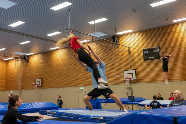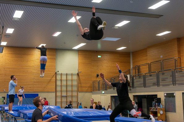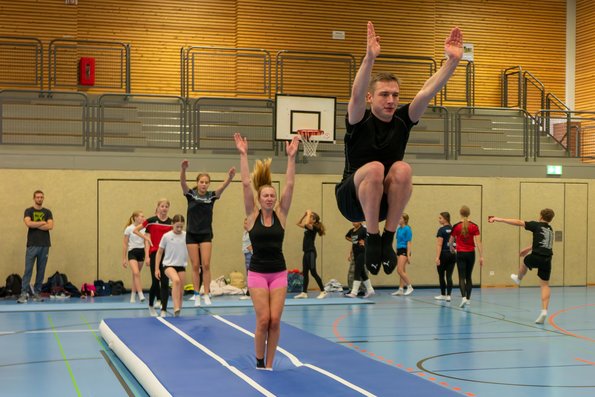 Der Tag war lang und kräftezehrend. Von den ersten Aufwärmübungen am Morgen bis zu den rückwärtsrotierenden Sprüngen und den unterschiedlichen Saltos am Nachmittag wurde den Aktiven alles abverlangt. Am Ende spürte jeder die intensive Anstrengung in den Muskeln, doch die Müdigkeit war ein Zeichen für ein gelungenes und erfolgreiches Training.
