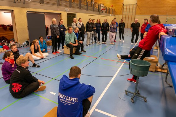 Es herrschte Hochspannung in der Halle: Der mit 28 engagierten Trainerinnen und Trainern restlos ausgebuchte Lehrgang „Tipps und Tricks“ versprach intensive Stunden. Doch es ging nicht nur darum, die Pflichtstunden für die Lizenzverlängerung zu sammeln. Viel wichtiger waren die Neugier und der Wissensdurst, der die Sportler antrieb: Ein Blick hinter die Kulissen, wie Trainerinnen und Trainer an die Herausforderung bestimmter Sprünge herangehen.